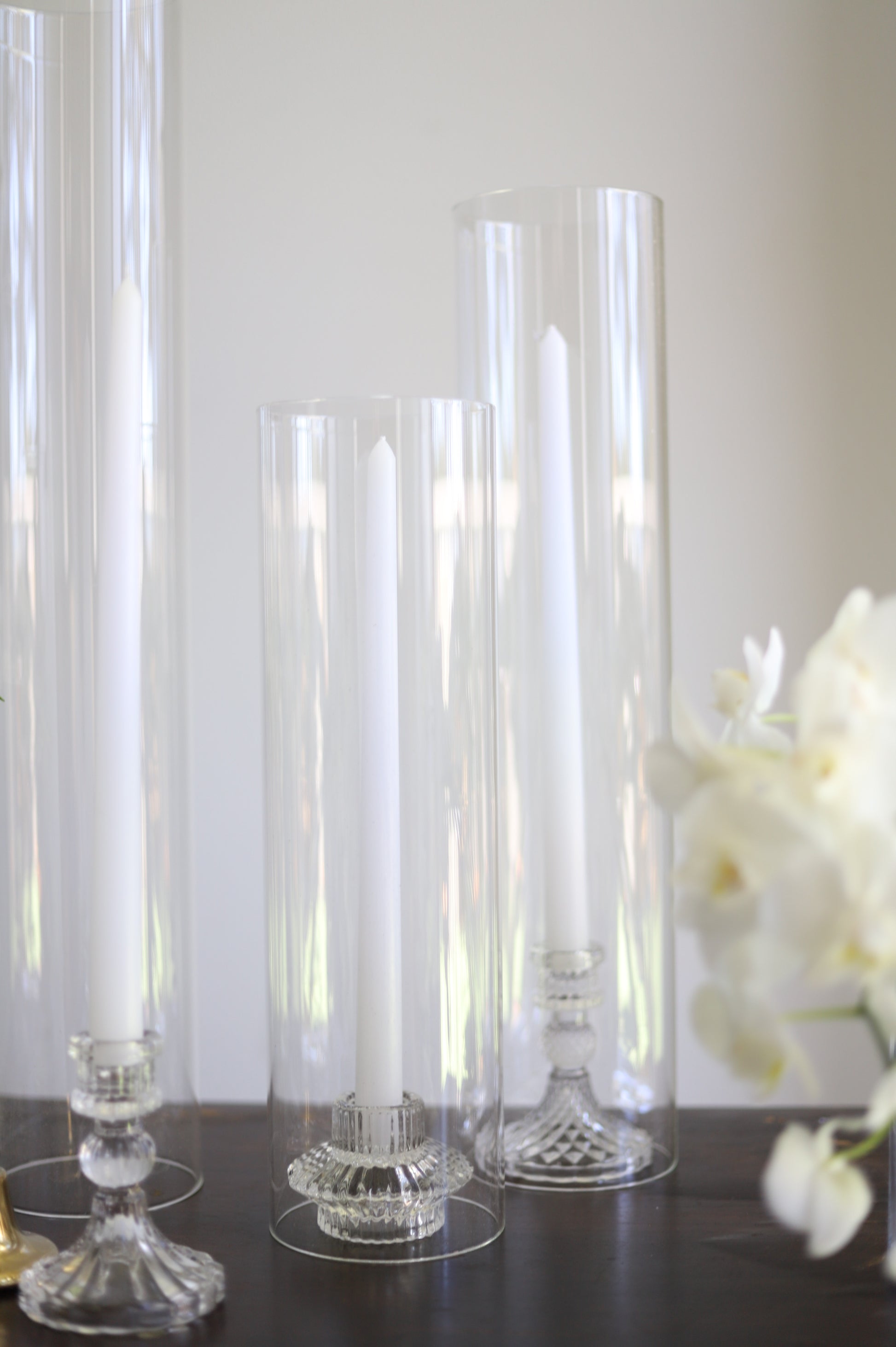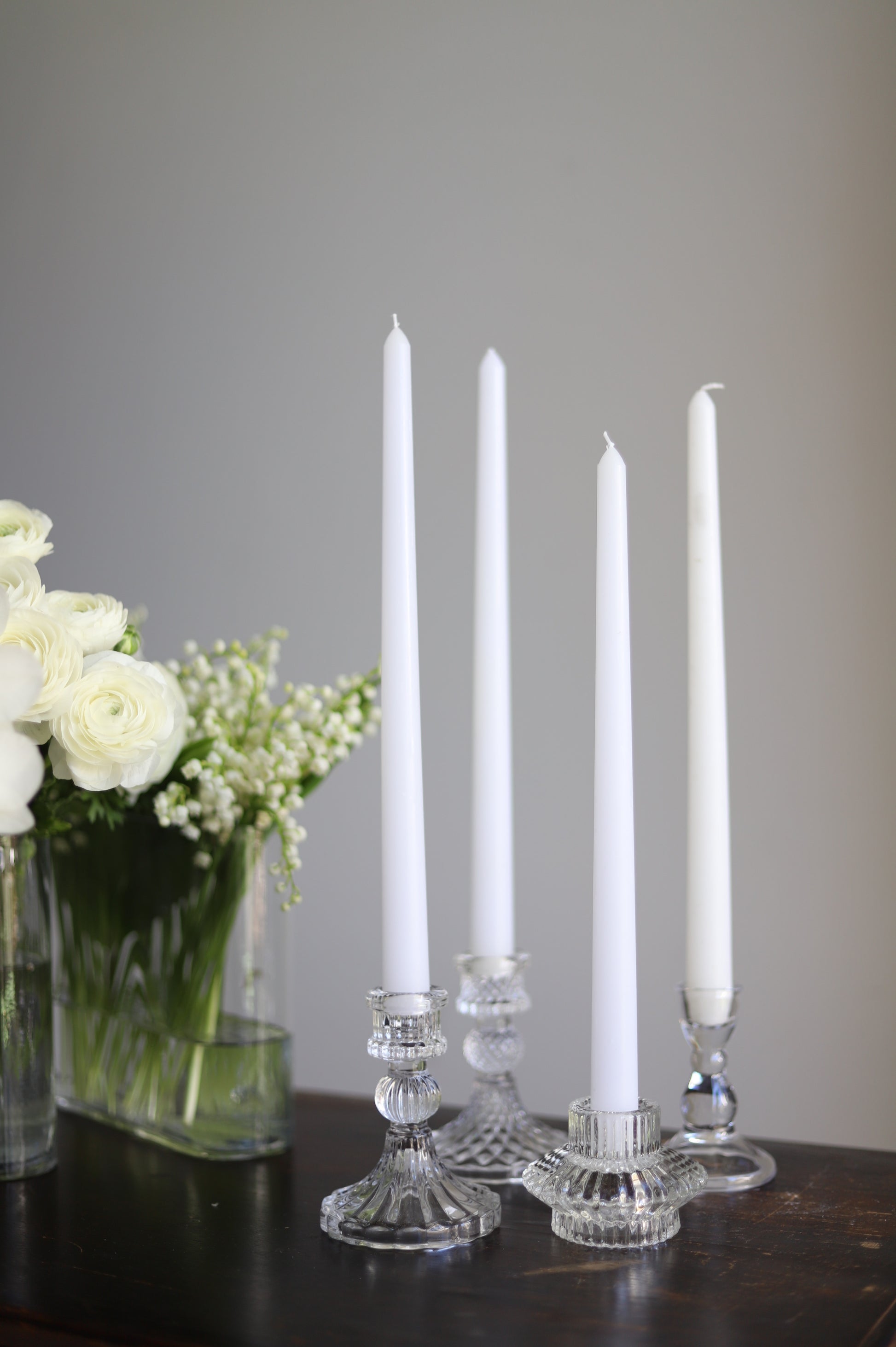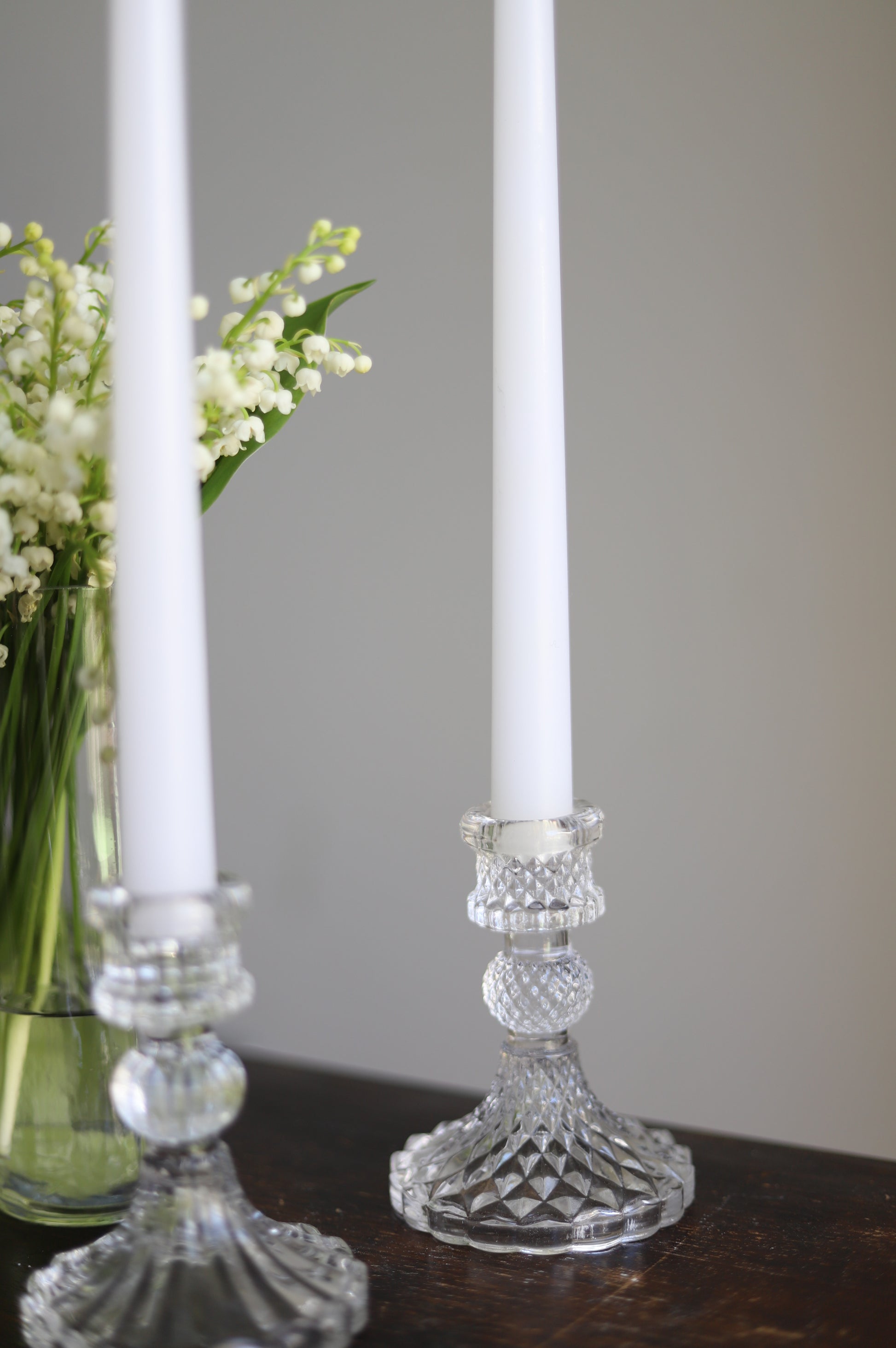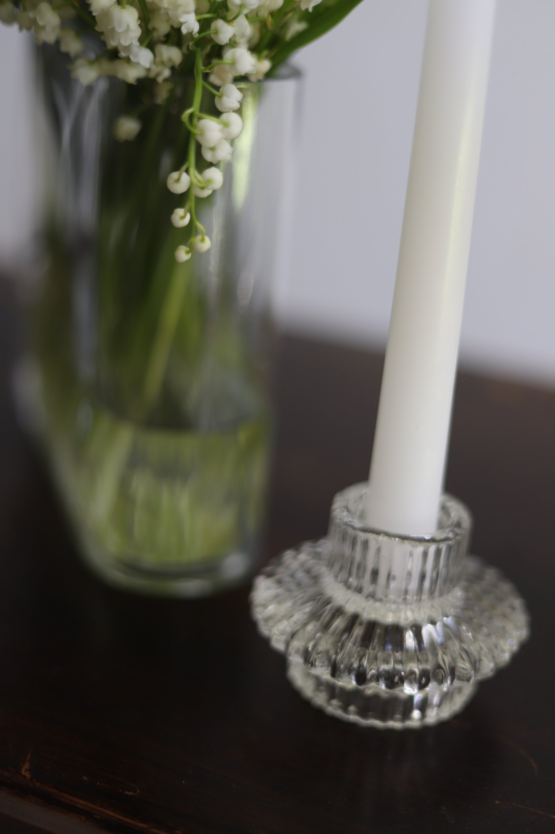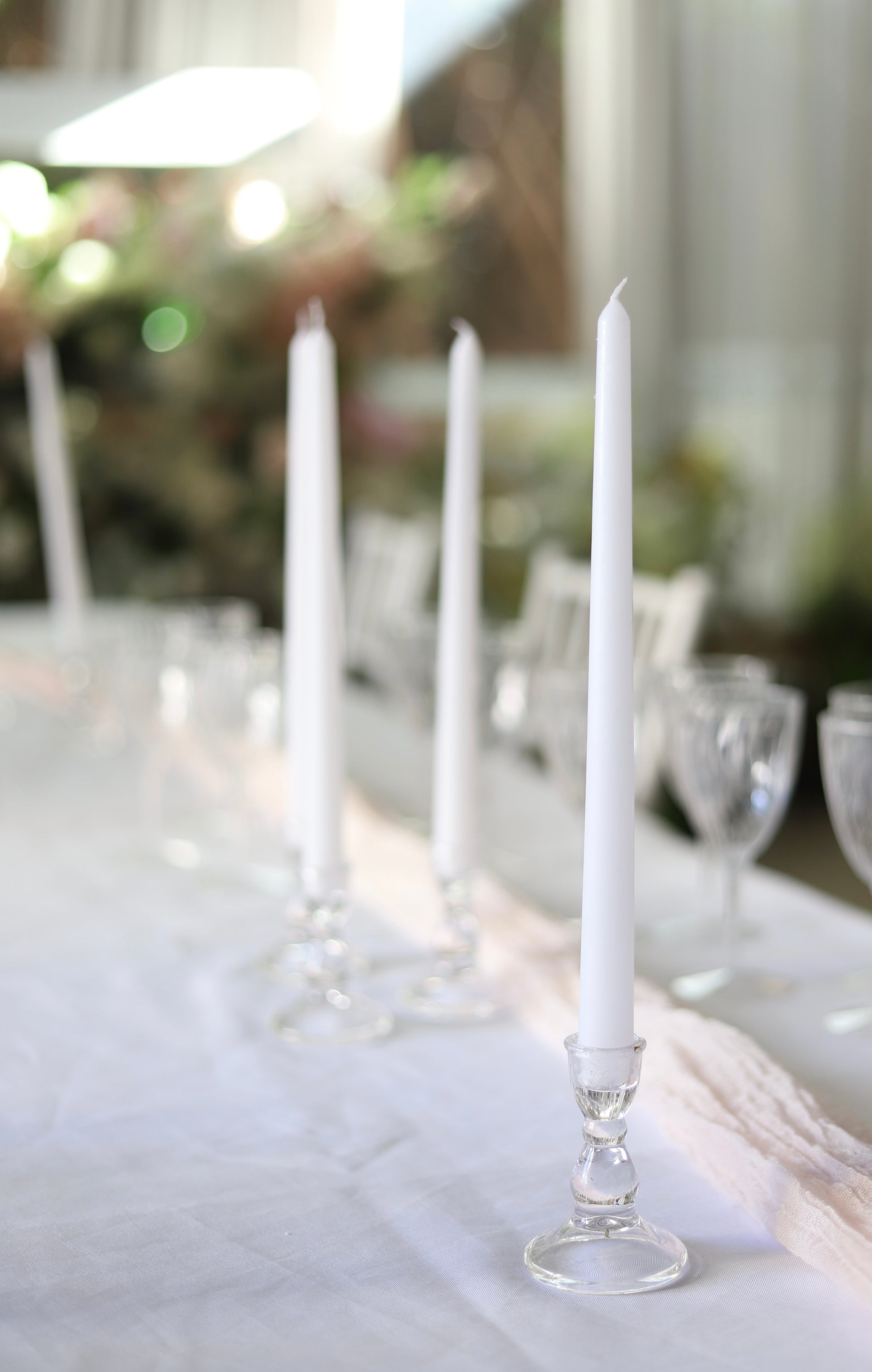 White taper candle + clear holder